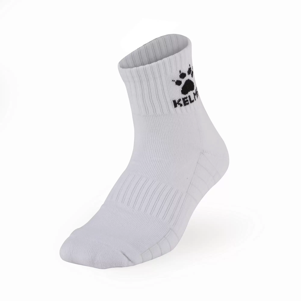 Носки из смесовой ткани на основе хлопка (78% хлопок, 20% полиэстер, 2% эластан) отлично подходят для занятий разнообразными видами спорта, активного отдыха или как аксессуар повседневного гардероба спортивного стиля. Мягкий, эластичный и прочный материал обеспечивает дополнительную вентиляцию и комфортные ощущения на протяжении всей тренировки или игры. Трикотажные резинки способствуют плотной посадке и предотвращают скольжение ступни внутри обуви. Модель декорирована контрастным логотипом Kelme.